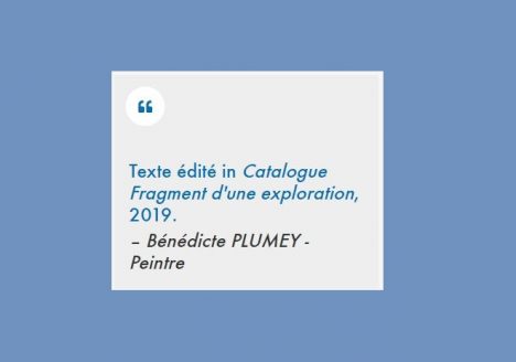Texte de Bénédicte PLUMEY (Peintre) édité in « Catalogue – Fragment d’une exploration », 2019.