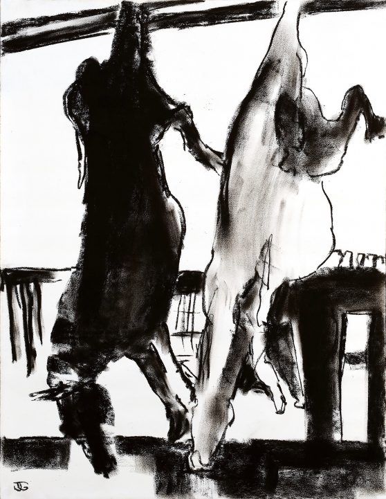 Je travaille au milieu des animaux tués et des hommes en tabliers maculés de sang, une tension qui fait s’estomper le bruit.