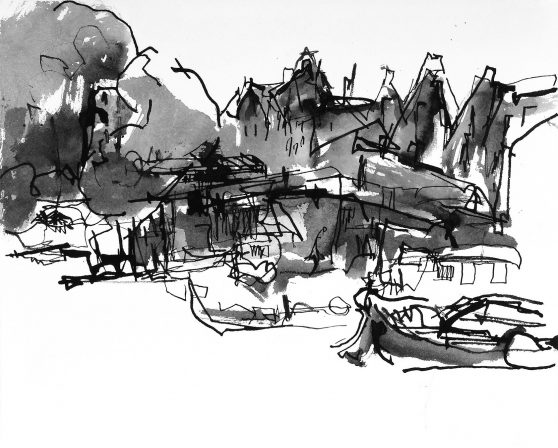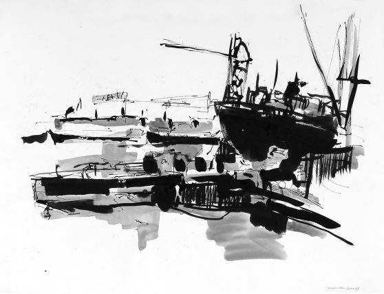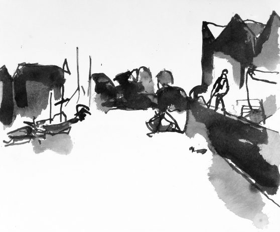 Amsterdam Prinseneiland, 1968 - encre & fusain sur papier, 49 x 64 cm
