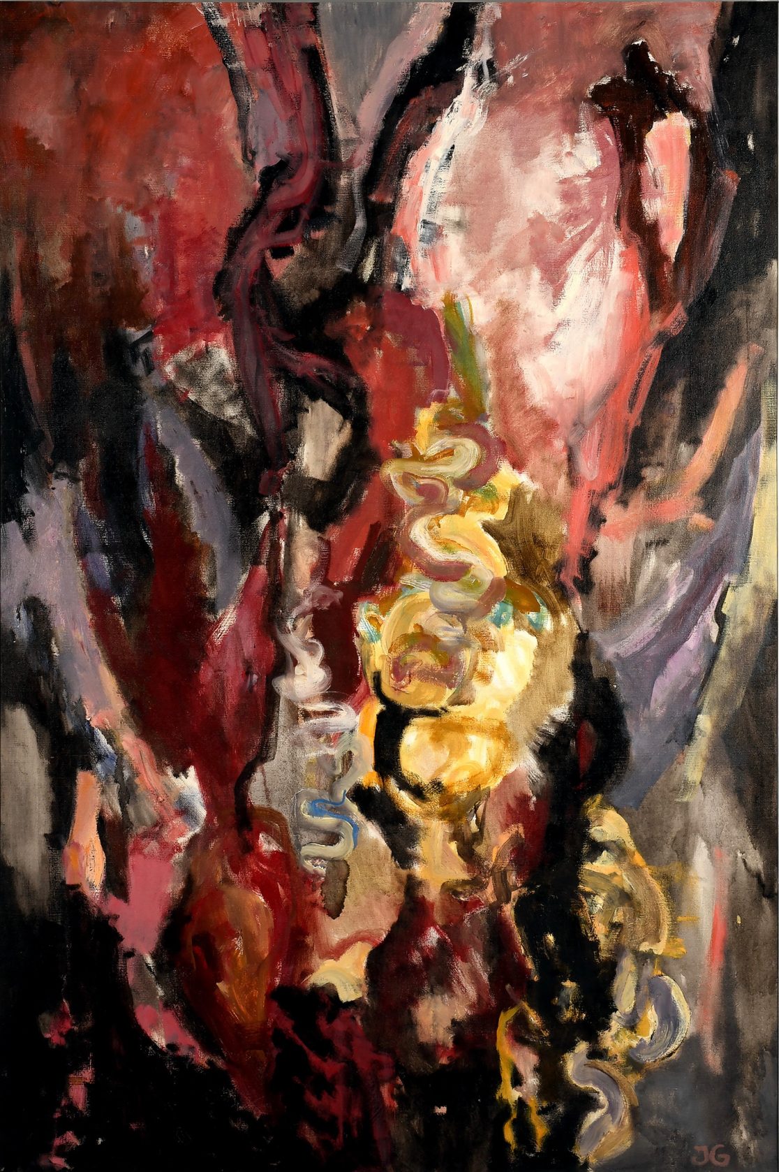 Le dialogue entre l’homme et son monde mécanique le bouleverse profondément. C’est l’émotion poignante ressentie devant ce drame qu’il cherche à exprimer. Sans la moindre violence, la brutalité de l’acte de mise à mort disparaît de ses compositions et les cadavres des animaux apparaissent au spectateur comme d’immenses organismes révélant la splendeur colorée de leurs tripes.